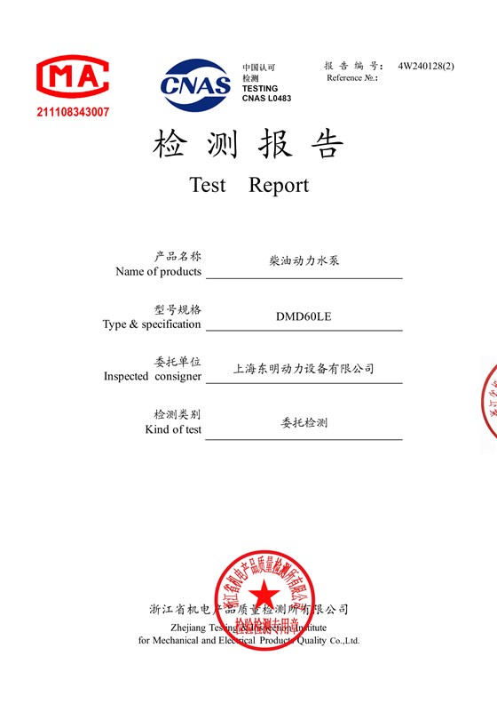 •上海东明 DMD60LE 机组具备专业检测报告,符合产品合规要求。