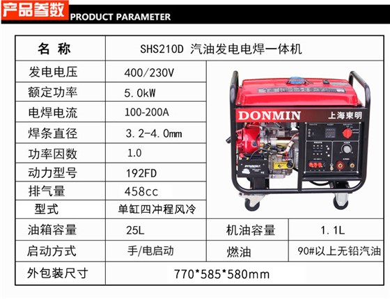 80-190A三相电动 5KW汽油发电电焊一体机SHS190D80-190A单相电动 5KW汽油发电电焊一体机SH190D