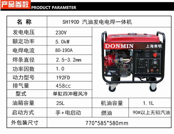 100-200A三相 电动5KW汽油发电电焊一体机SHS210D80-190A三相电动 5KW汽油发电电焊一体机SHS190D