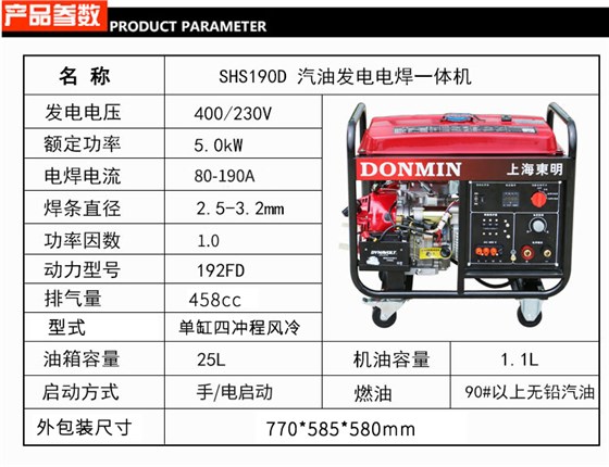 100-200A三相 电动5KW汽油发电电焊一体机SHS210D80-190A单相电动 5KW汽油发电电焊一体机SH190D